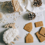 - Componenti pretagliati di pan di zenzero pronti per l’assemblaggio.