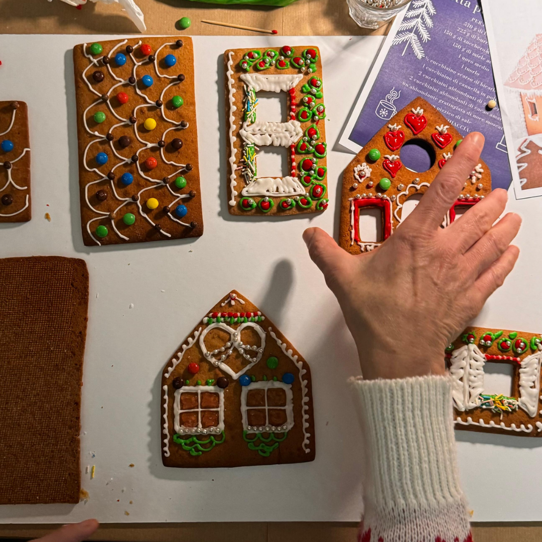 Porta la magia del nostro laboratorio a casa tua: il Kit Fai-da-Te – Casette di Pan di Zenzero contiene tutto il necessario per assemblare e decorare la tua casetta natalizia. I pezzi sono già pretagliati, quindi basta montare, decorare e divertirsi.