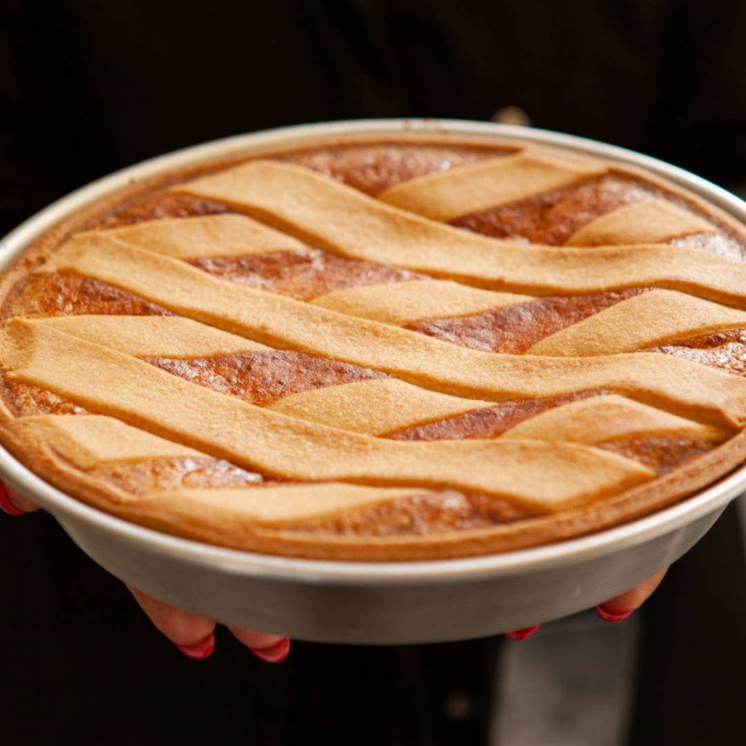 La lenta preparazione artigianale, con tempi di riposo rispettati come da tradizione, esalta la fragranza della frolla e la morbidezza del ripieno, per un gusto che conquista al primo assaggio.